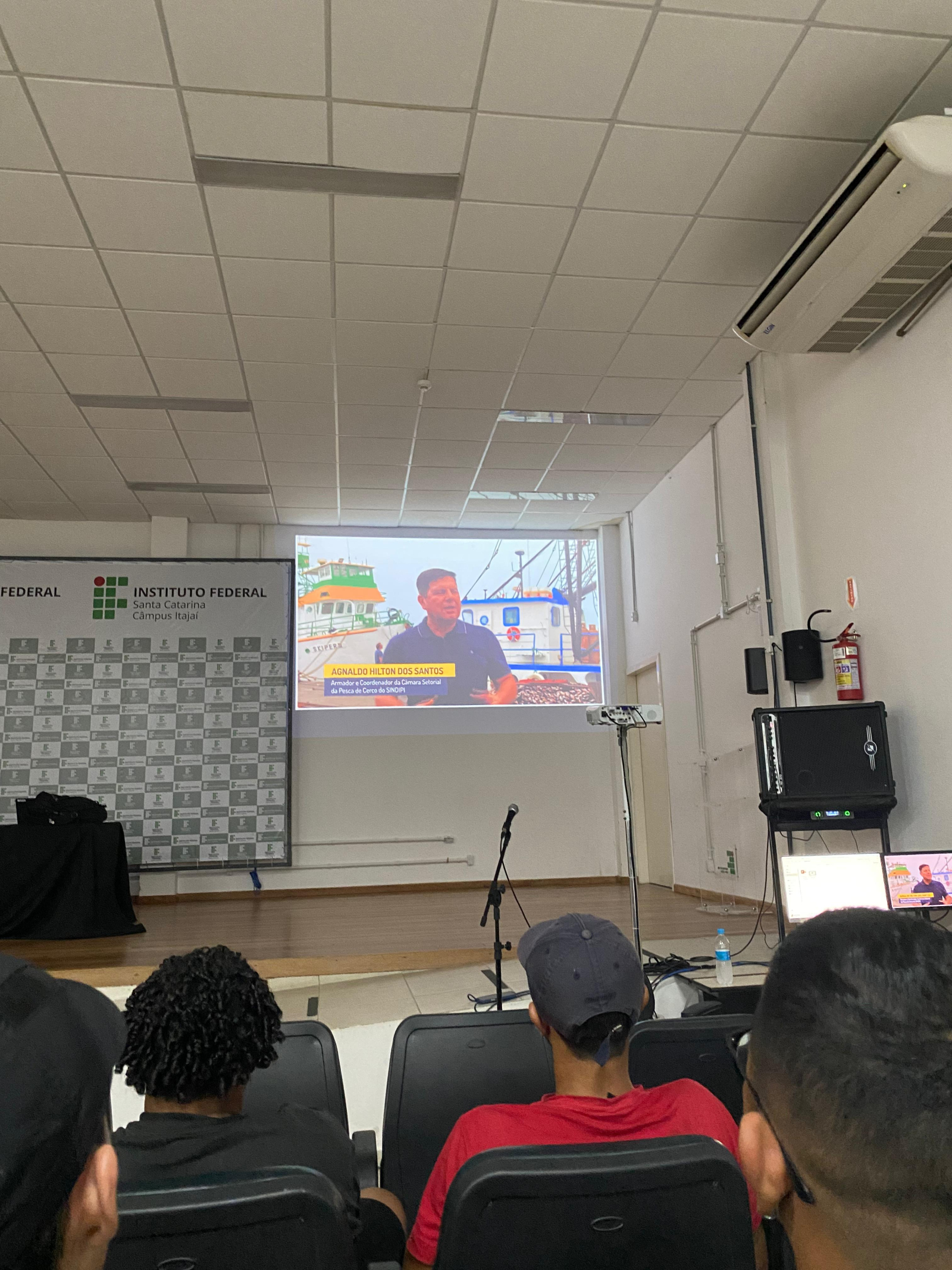 O SINDIPI esteve presente no Iº cine-debate da Fase 3 do Projeto RUMO, realizado no auditório do campus do IFSC Itajaí, na última terça-feira, 7 de abril. O evento reuniu representantes de empresas e instituições que representam setores que ocupam a Foz do Itajaí-Açu, da Câmara de Vereadores e alunos do curso de pescador profissional para uma troca sobre um dos episódios do Diagnóstico Audiovisual, que trata da pesca industrial. A produção contou com a participação dos ex-presidentes dos SINDIPI, Agnaldo Hilton dos Santos e Jorge Neves.